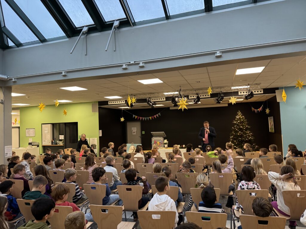 Am Dienstag, den 09.12., kamen wieder alle Klassen in unserem Forum zusammen, um gemeinsam den 2. Advent zu feiern. Ein besonderes Highlight war dieses Mal das Flötenkonzert unserer Schülerinnen und Schüler, die mit viel Freude für eine stimmungsvolle Eröffnung sorgten. Anschließend wurden Gedichte vorgetragen, bevor alle gemeinsam den Klassiker: In der Weihnachtsbäckerei anstimmten. Die festliche Atmosphäre war überall zu spüren, und wir freuen uns schon jetzt auf die nächste gemeinsame Adventsfeier.