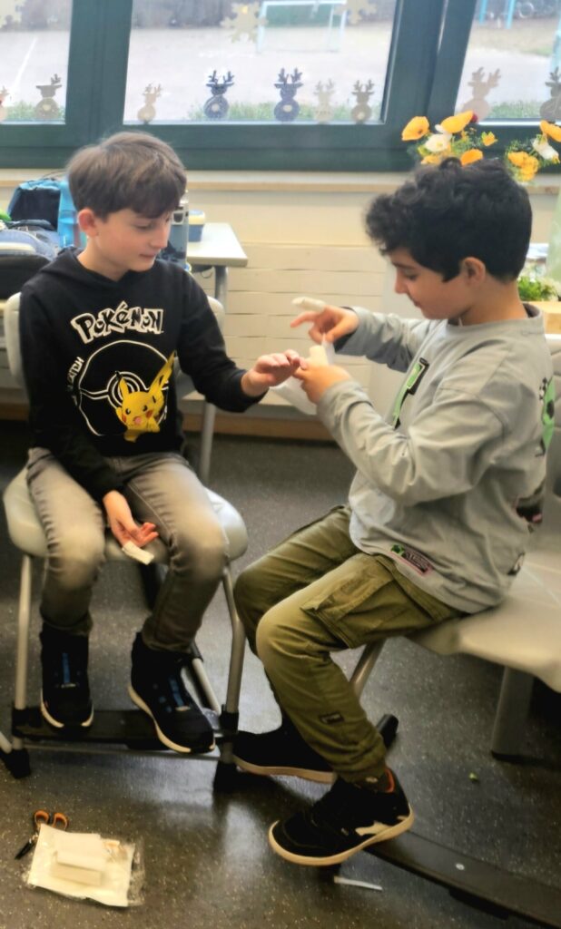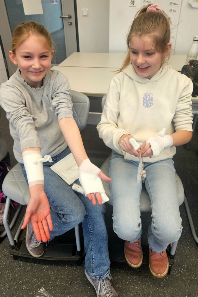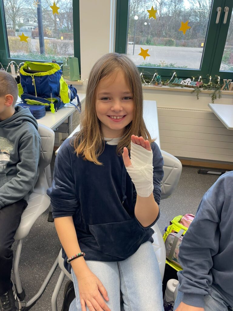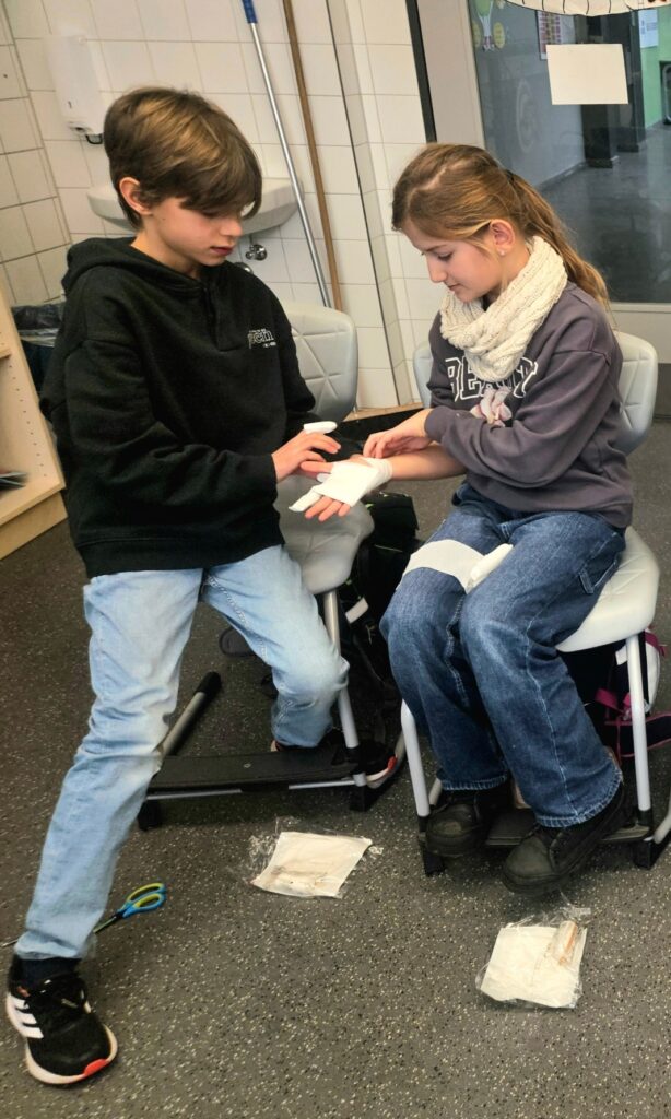 Damit sind sie gut vorbereitet, um unsere Hofpausen als „Erste-Hilfe-Dienst“ zu begleiten und kleinere Verletzungen zu versorgen.