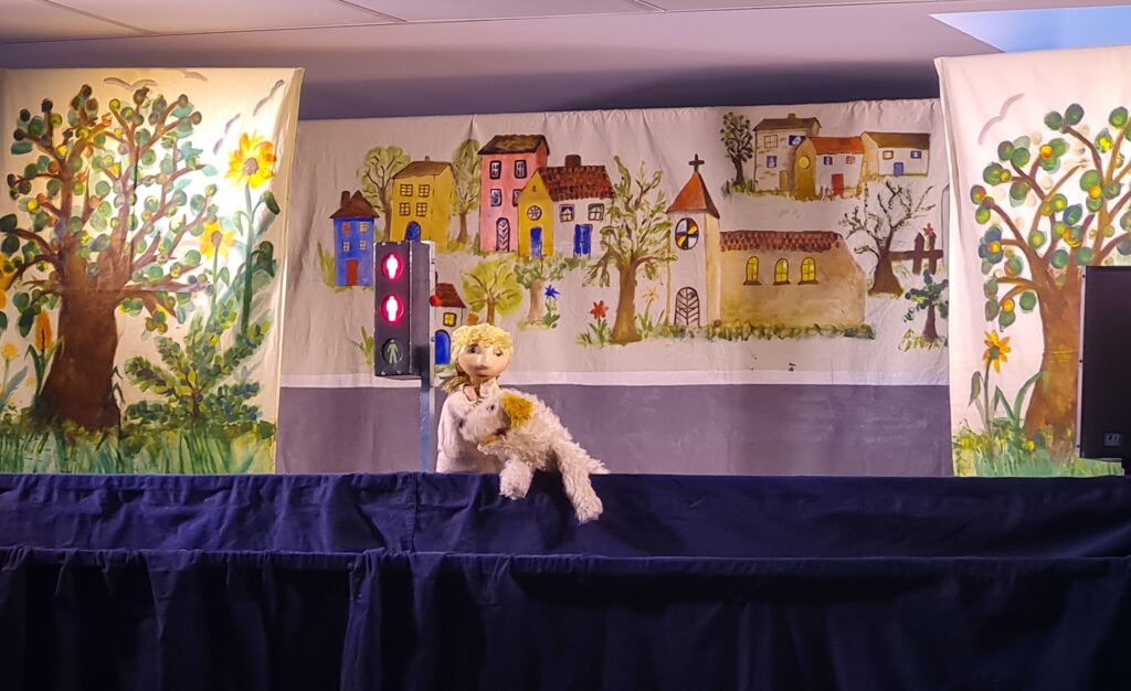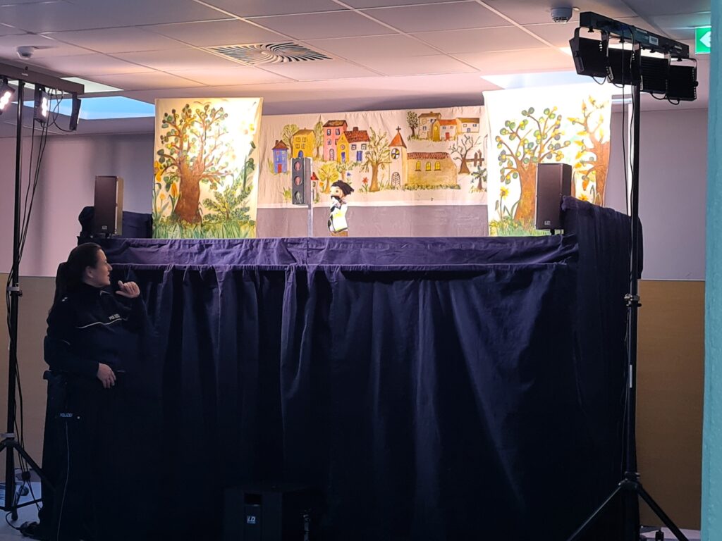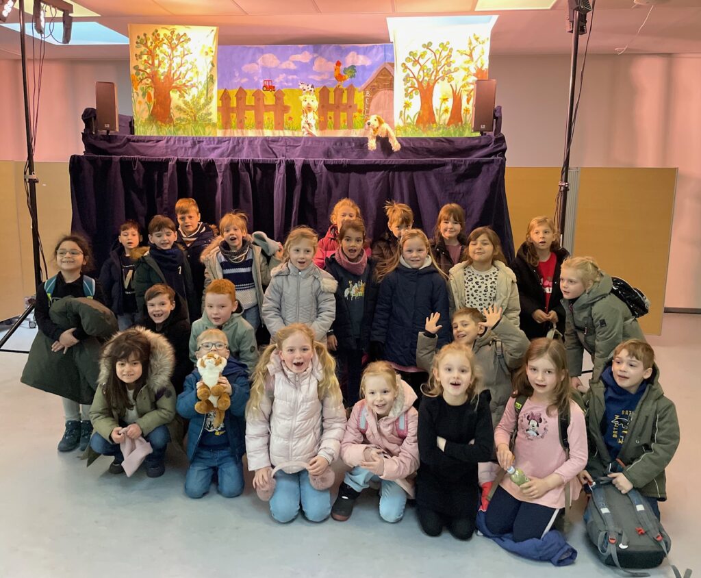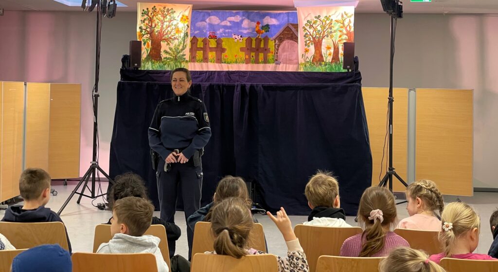 Ihre verhältnismäßig geringe Größe, Spiel- und Bewegungsdrang machen unsere Erstklässler:innen zu einer besonders gefährdeten Gruppe von Verkehrsteilnehmern. Umso wichtiger ist das regelmäßige Einüben von Verkehrsregeln und Erkennen von möglichen Gefahren. Im Theaterstück ist der kleine Hund Bello der Star, der sich im Straßenverkehr nicht auskennt und mithilfe der Kinder einen sicheren Weg findet. Vielen Dank an alle, die mit viel Engagement den Kindern in Zeiten von Digitalisierung und hohen Medienzeiten ein kindgerechtes Theaterstück bieten.