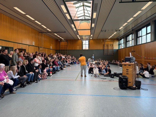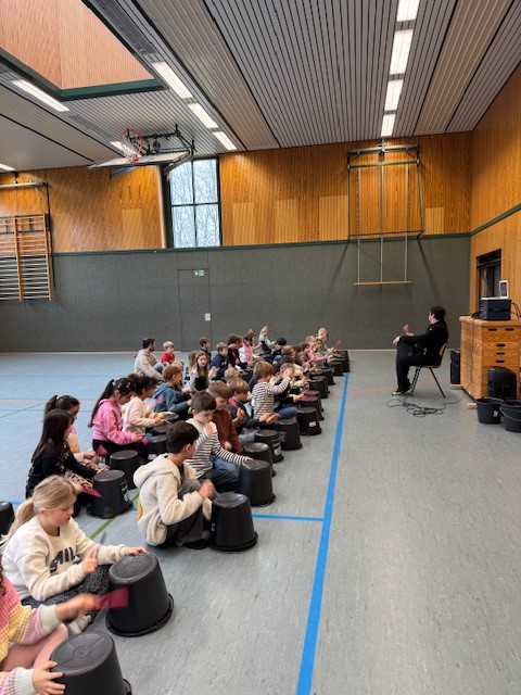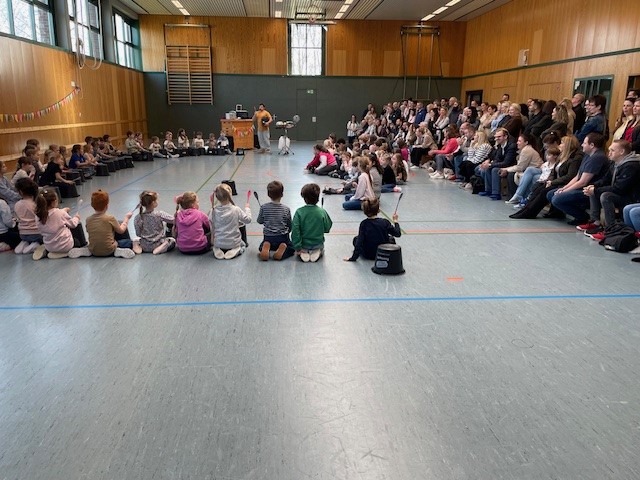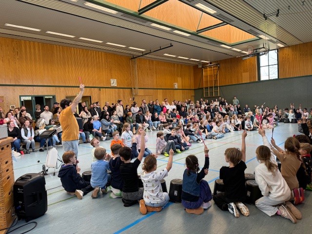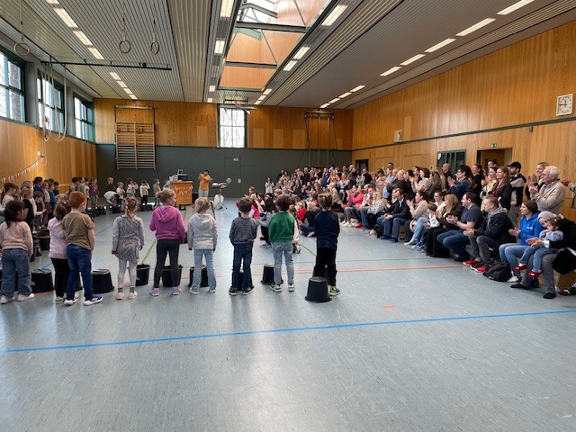 Die Kinder erlebten in dieser Trommelwoche, wie das gemeinsame Musizieren uns verbinden und das Trommeln – egal ob auf Eimern und mit Kochlöffeln oder mit klassischen Instrumenten – Spielenden wie Zuhörern große Freude bereiten kann. Und so gab es auch großen Applaus von den Eltern und Gästen, die zu den Abschlusspräsentationen am Freitag in unsere Turnhalle kamen und auch selbst in die Vorführungen durch Sprechgesang und Bodypercussion einbezogen wurden.